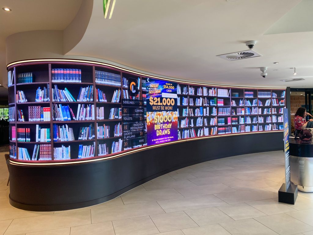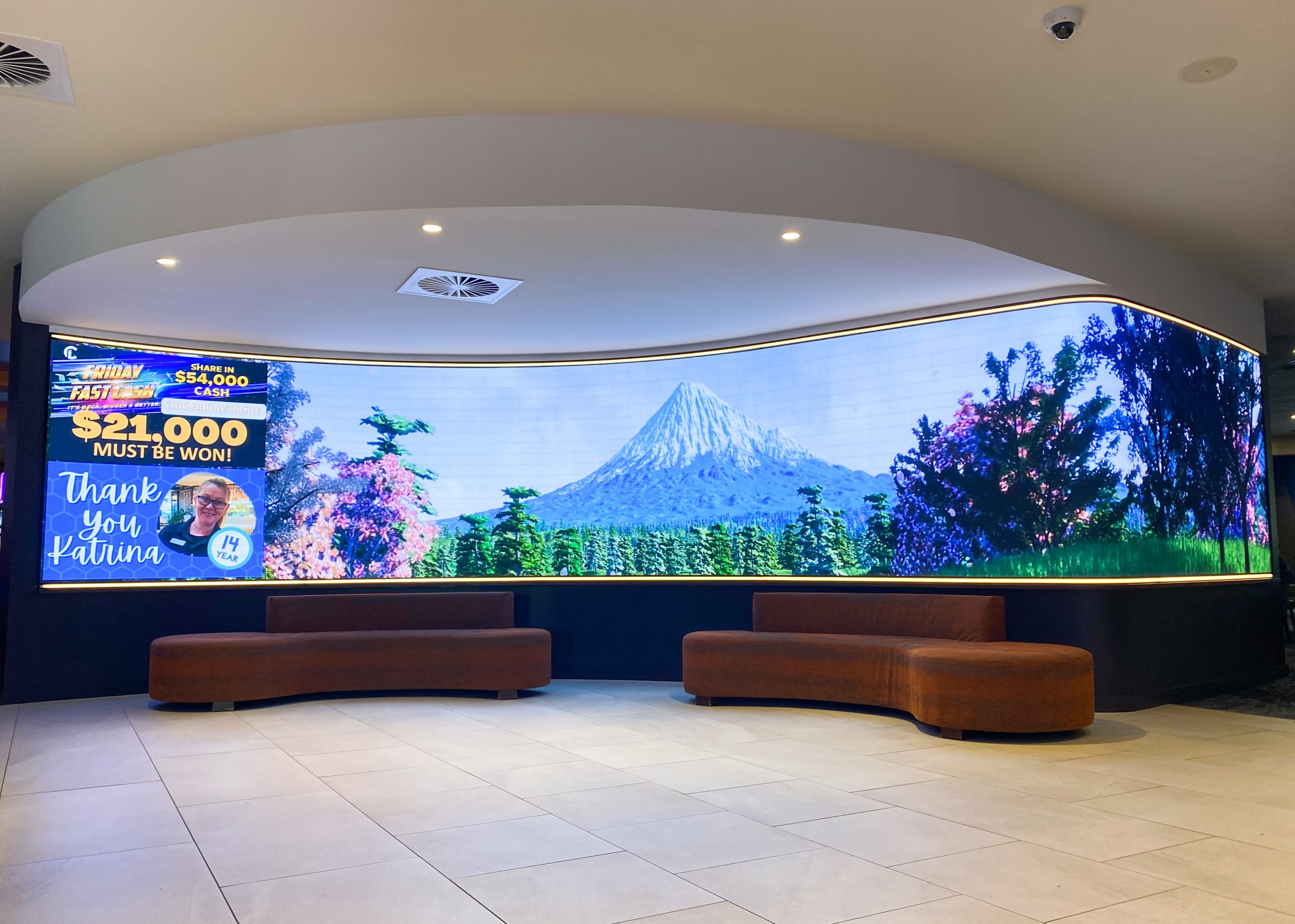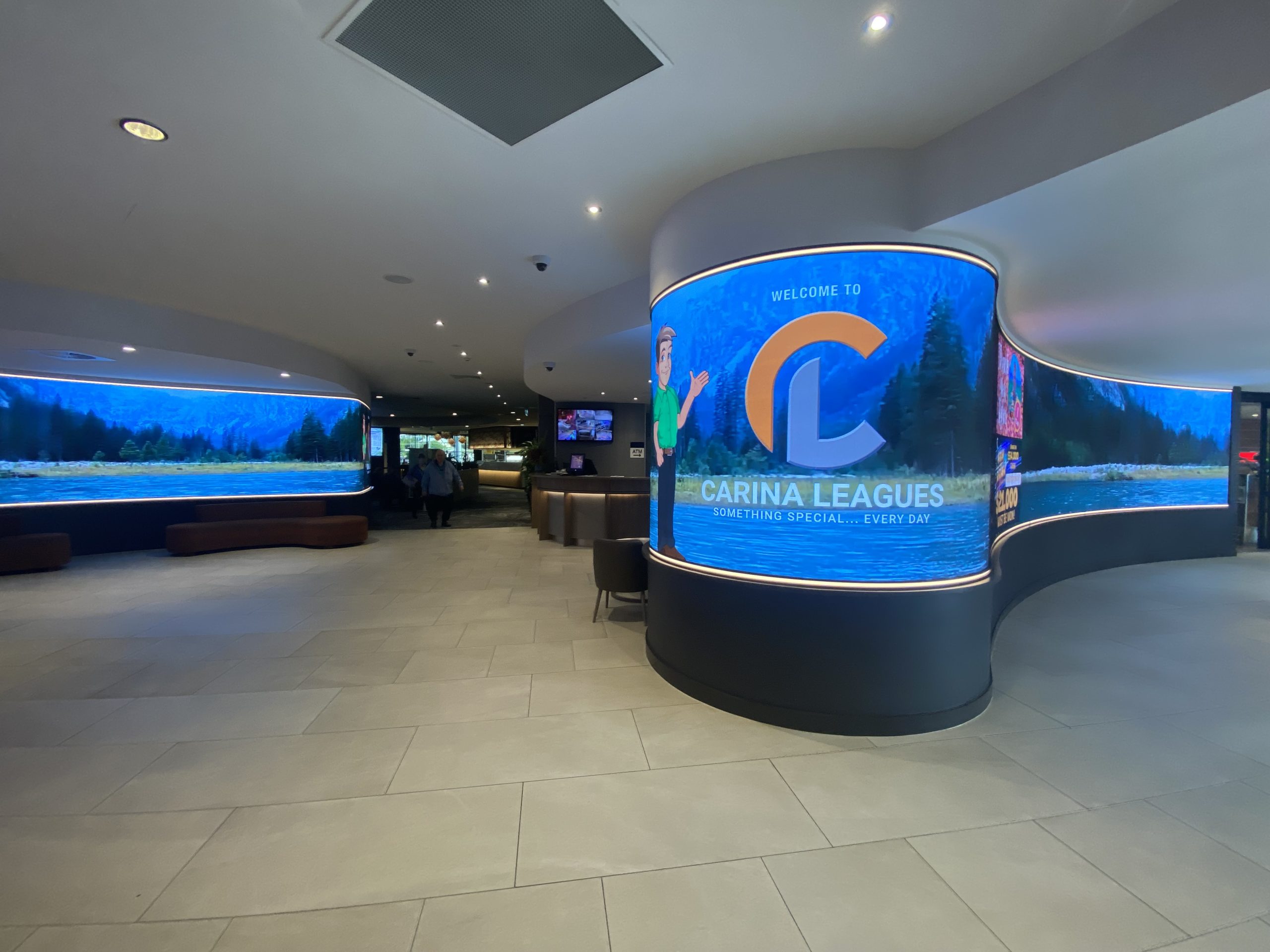 The newly-renovated entry to Carina Leagues Club has been amplified by two massive interconnected and immersive Simtech LED walls. In-house, Simtech designed, manufactured and installed the LED displays, and also created the synchronised visual content. Features include high-quality P2 LED pixel technology, overlays for various schedulable animation sequences, customisable picture screens for internal marketing and widgets to show current news headlines, weather and the time around the world. This was a progressive development for Simtech’s in-house animation studio who utilised real-time graphics and game control software to create content.