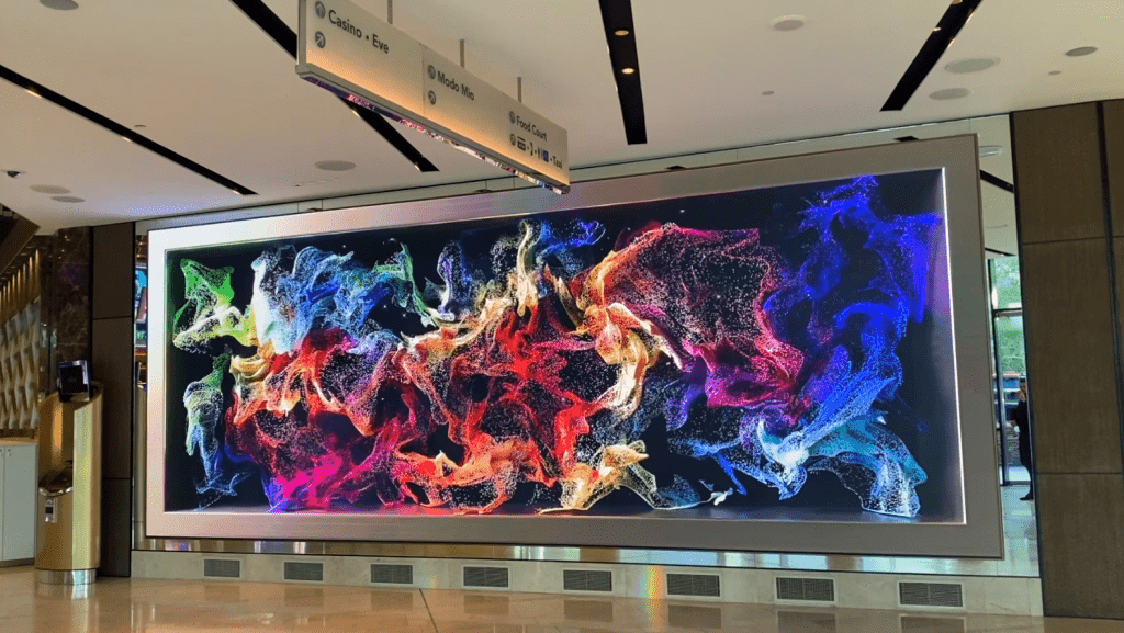 Across the whole property floor, Crown Perth has utilised Simtech’s immersive LED technology and coupled it with fantastic content that is synced to change across all displays simultaneously to create an amazing atmosphere of colours, patterns and marketing to enhance the patron experience. LED entry portals, bulkhead displays, welcoming displays and an iconic roulette display has been designed, manufactured and installed by Simtech.