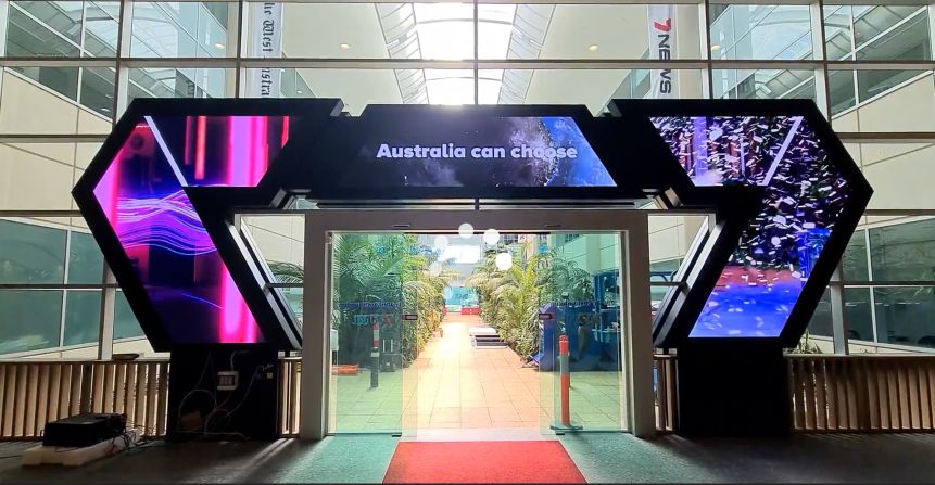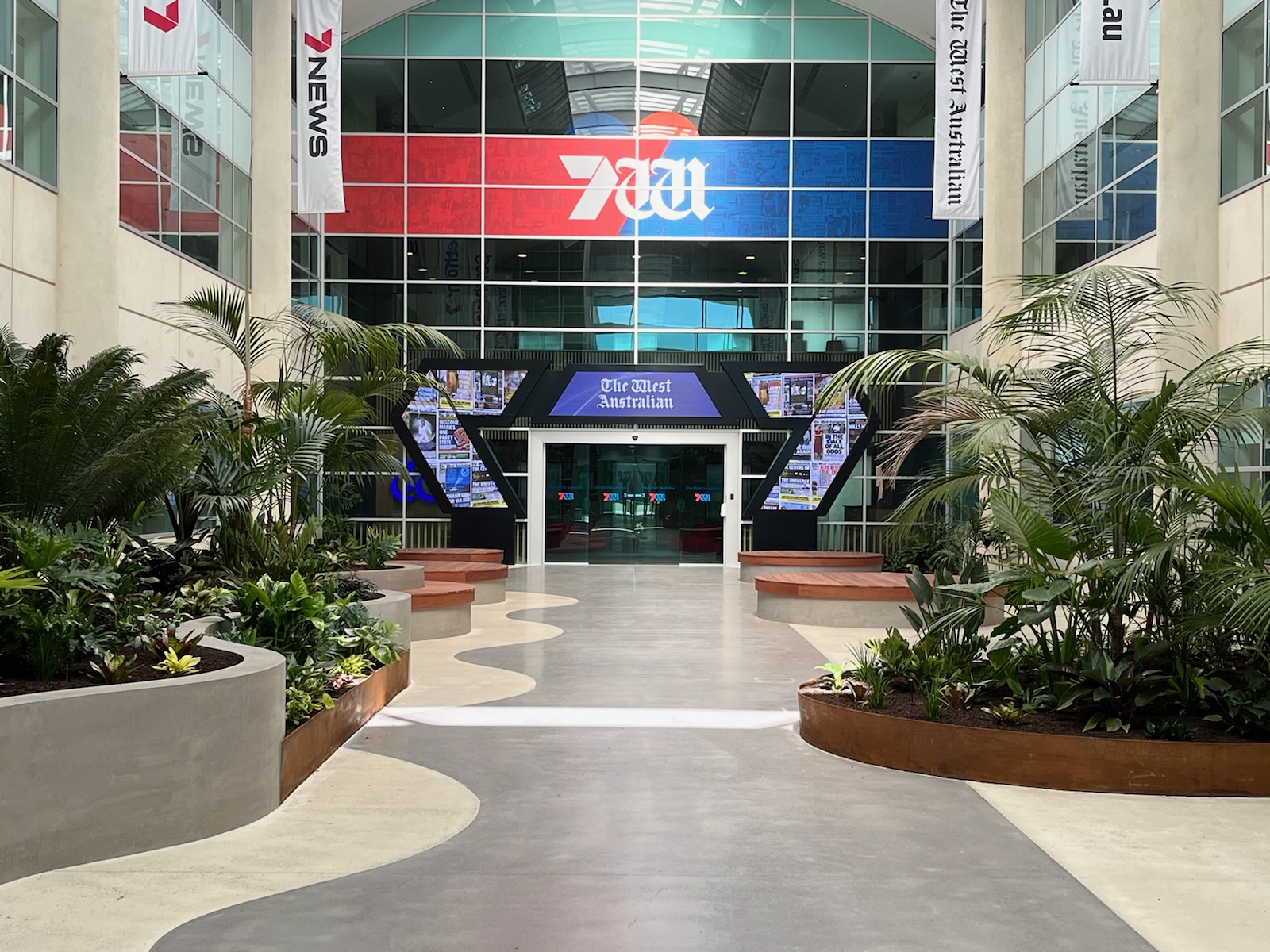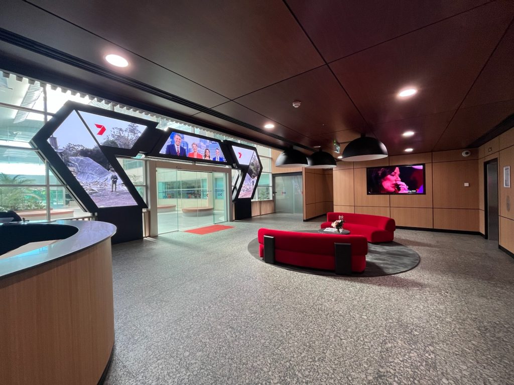 Entering a news studio has never been so satisfying and ‘on brand’ as it is to walk in the Channel 7 West news studio through the custom Simtech double sided entry display portraying their iconic ‘7’ logo. The studio can accurately display the upcoming broadcasting events and exciting new shows on this display. They have the ability to create a fun atmosphere for high profile visitors entering the studios including celebrities, politicians and news reporters.